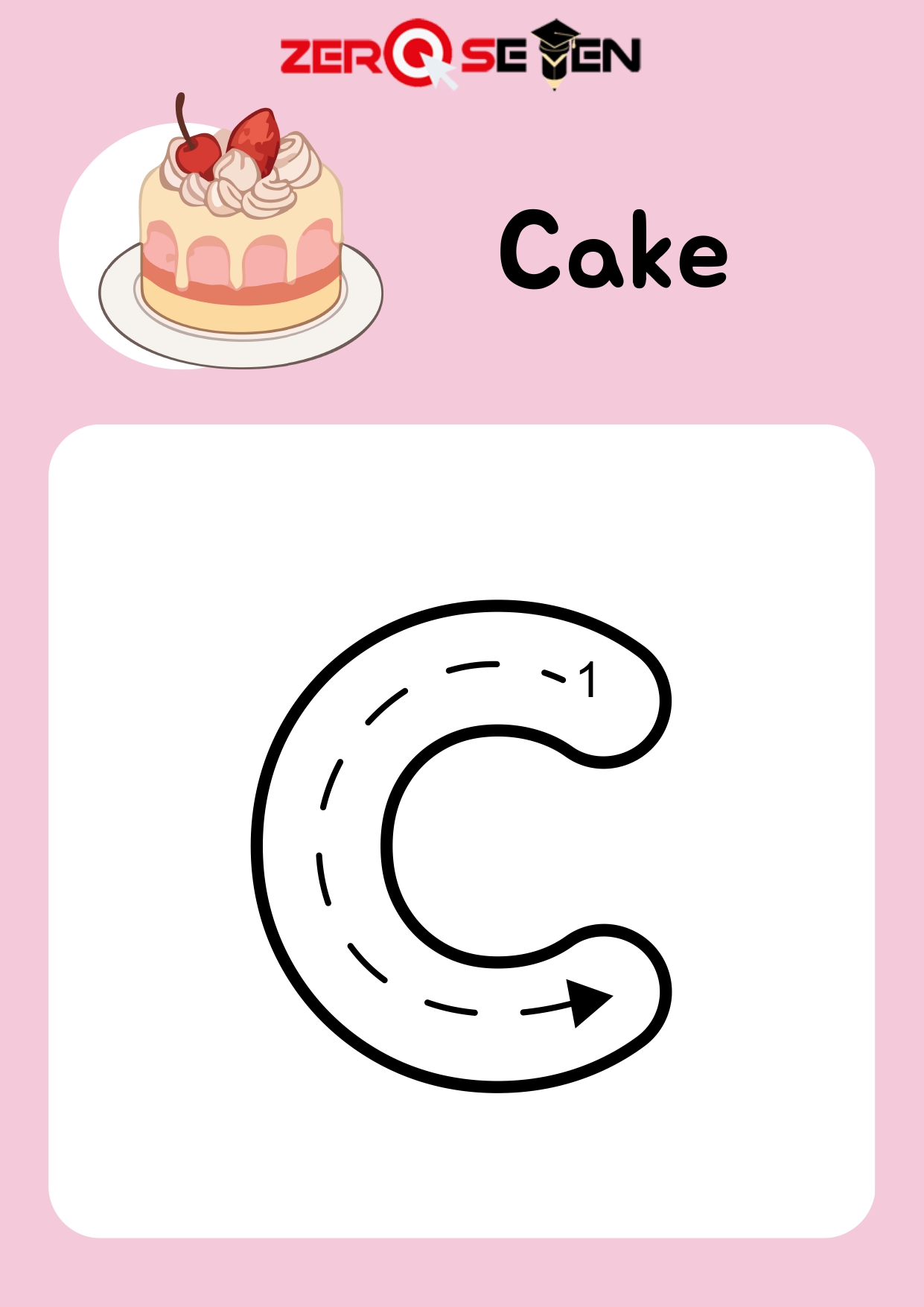 Letter C Tracing Worksheet with Cake