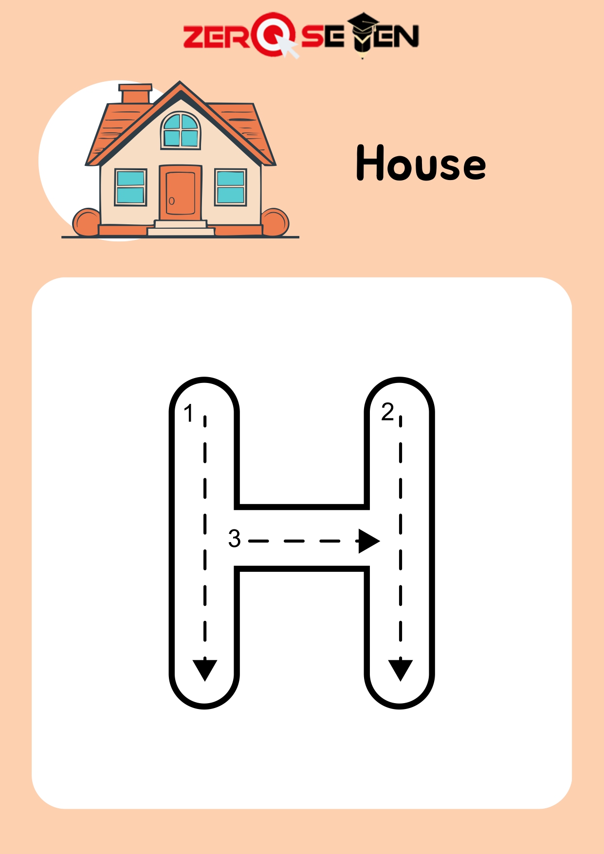Letter H Tracing Worksheet with House