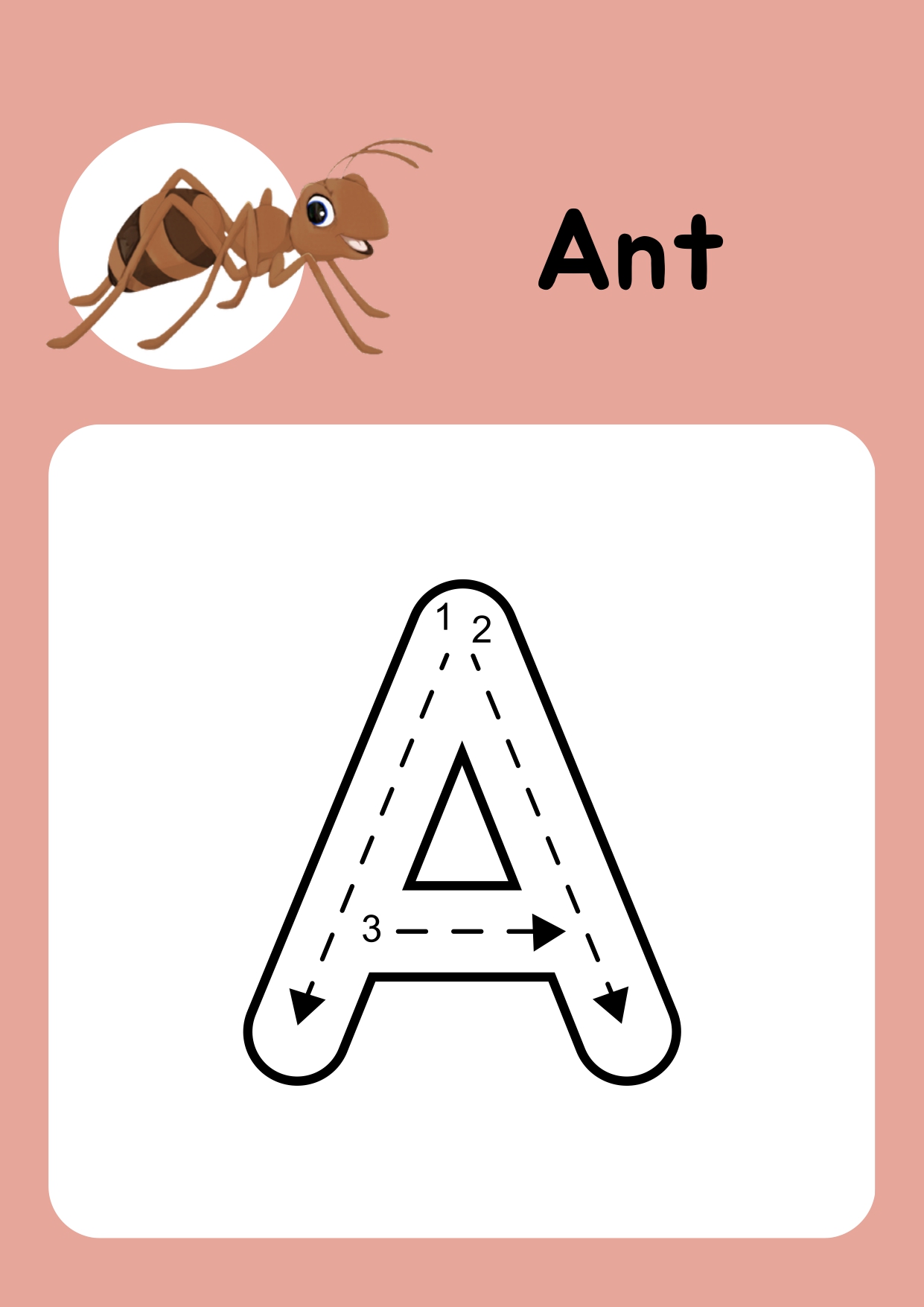 Letter A Tracing Worksheet with Ant